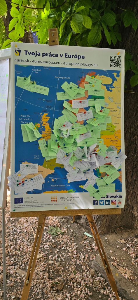V Košiciach sme boli súčasťou Európskej dedinky. Plnením úloh v jednotlivých stánkoch európskych inštitúcií  návštevníci získavali pečiatky na špeciálne kartičky. Z nich sa žrebovali výhercovia zaujímavých cien. Jeden z balíčkov venovaných sieťou EURES získala študentka, ktorá na podujatie prišla až z Kežmarku.