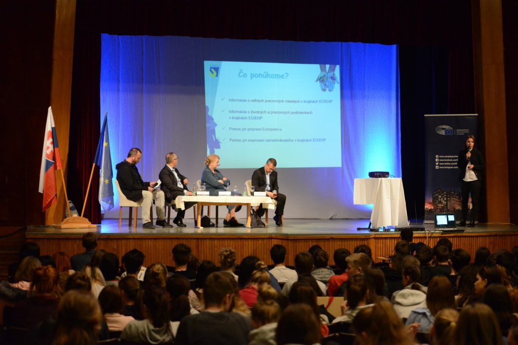 V piatok 10. novembra 2017 sa v Kultúrnom dome v Turčianskych Tepliciach uskutočnilo diskusné podujatie na tému Budúcnosť Európy, ktorého sa zúčastnili poslanci Európskeho parlamentu Vladimír Maňka (SaD), Anna Záborská (EPP), riaditeľ Informačnej kancelárie EP na Slovensku Robert Hajšel a EURES poradkyňa Iveta Petruňová. Študenti sa počas 2-hodinovej diskusie dozvedeli viac o kompetenciách EÚ a možnostiach pre mladých. Debatovalo sa o aktuálnych otázkach ako ekológia, zamestnanosť, daňové raje či európska identita. Študenti mali množstvo veľmi konkrétnych otázok, týkajúcich sa práce EP, bežného pracovného dňa poslanca či rozdeľovania financií v EÚ. Študentom boli odprezentované projekty EÚ – Tvoje prvé pracovné miesto EURES, Drop pin, ako aj informácie o tom ako im môže sieť EURES pomôcť nájsť si uplatnenie na trhu práce v inej členskej krajine EÚ/EHP.