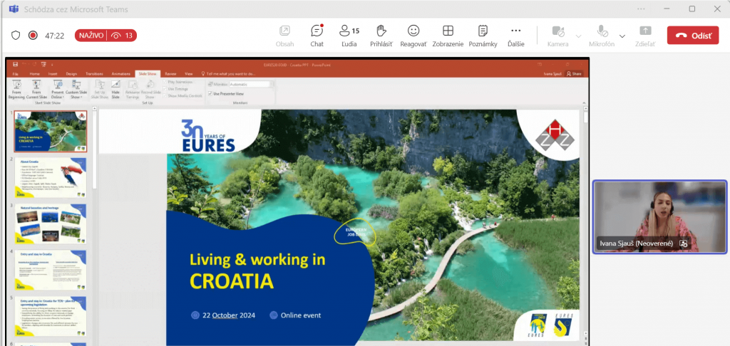 Dňa 22.10.2024 sa sieť EURES Slovensko zúčastnila online burzy práce Today’s dream, tomorrow’s reality venovanej 30. výročiu siete EURES.